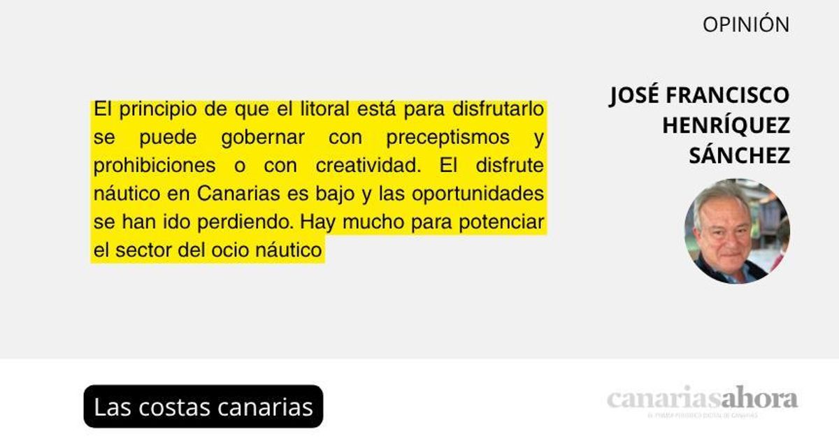 El principio de que el litoral está para disfrutarlo se puede gobernar con preceptismos y prohibiciones o con creatividad. El disfrute náutico en Canarias es bajo y las oportunidades se han ido perdiendo. Hay mucho para potenciar el sector del ocio náutico …