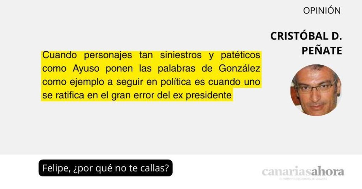 Cuando personajes tan siniestros y patéticos como Ayuso ponen las palabras de González como ejemplo a seguir en política es cuando uno se ratifica en el gran error del ex presidente Hay gente que envejece muy mal. Felipe González es un caso harto evidente,…